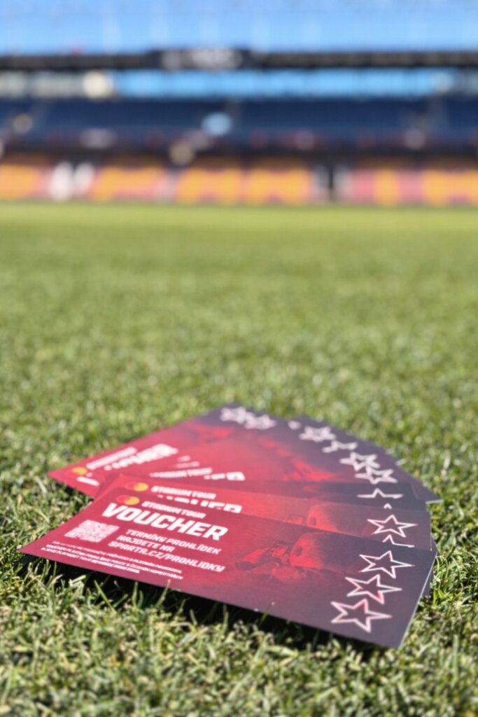 Voucher je platný pouze na prohlídky stadionu s českým komentářem v ceně 390 Kč.