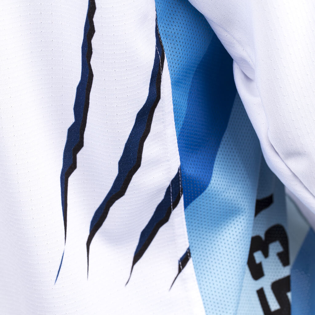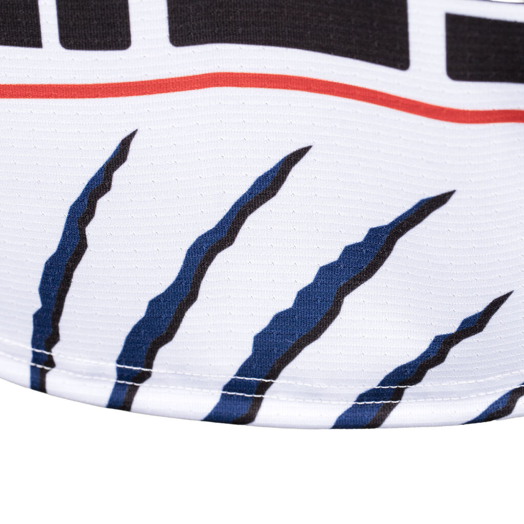Design propojuje majestátní symbol ledovce s energií, odhodláním a bojovností týmu. Celkový vzhled dresu podtrhují výrazné „škrábance“ medvěda, dynamický detail symbolizující tvrdost soubojů a nekompromisní cestu za vítězstvím. Bílé provedení evokuje chlad, soustředění a pevnou vůli, přesně ty vlastnosti, které rozhodují v play off.