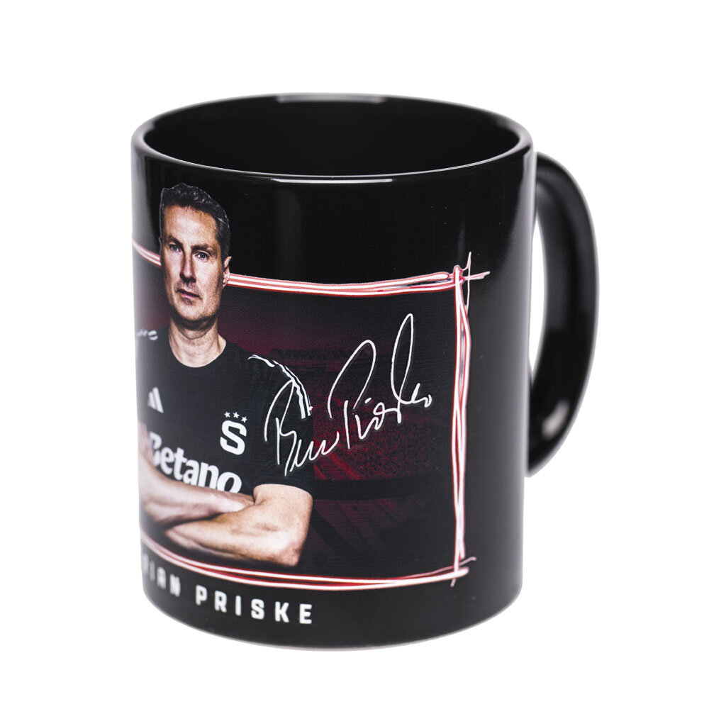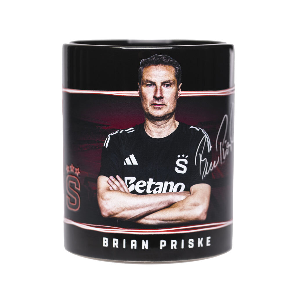 Tento černý hrnek je součástí hráčské kolekce Sparty pro sezónu 2025/2026 trenér Brian Priske.