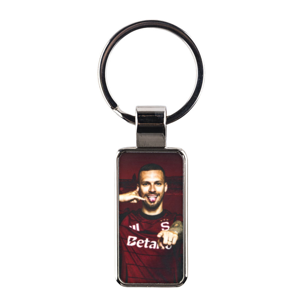 Dominantou je motiv kapitána týmu Lukáše Haraslína, symbolizujícího současnou lídrovskou tvář Sparty. Na zadní straně je číslo 22 doplněné o detail fotbalového míče, což dodává klíčence autentický sportovní charakter. Je ideální na klíče i jako sběratelský fanouškovský doplněk.
