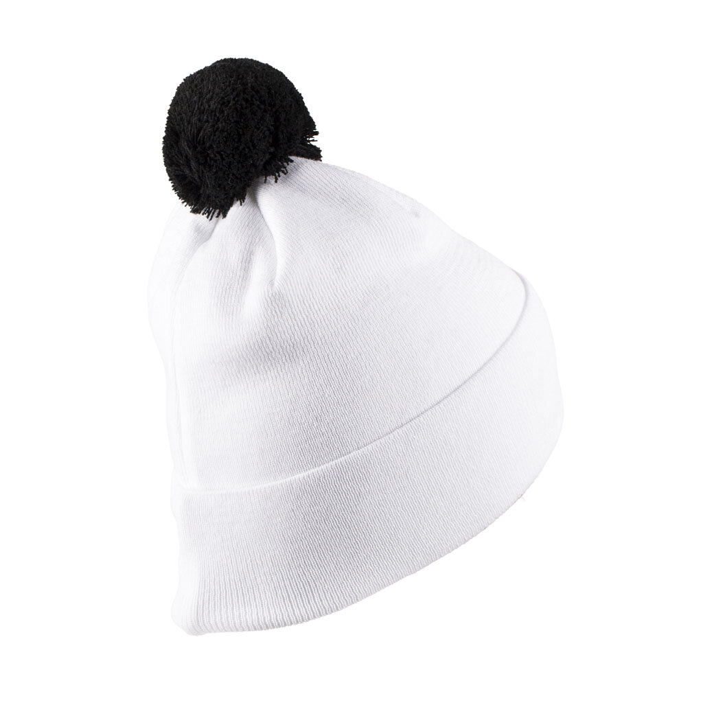 Stylový kulich s bílou bambulí a ikonickým "S" v černém provedení je ideálním doplňkem pro chladné dny.