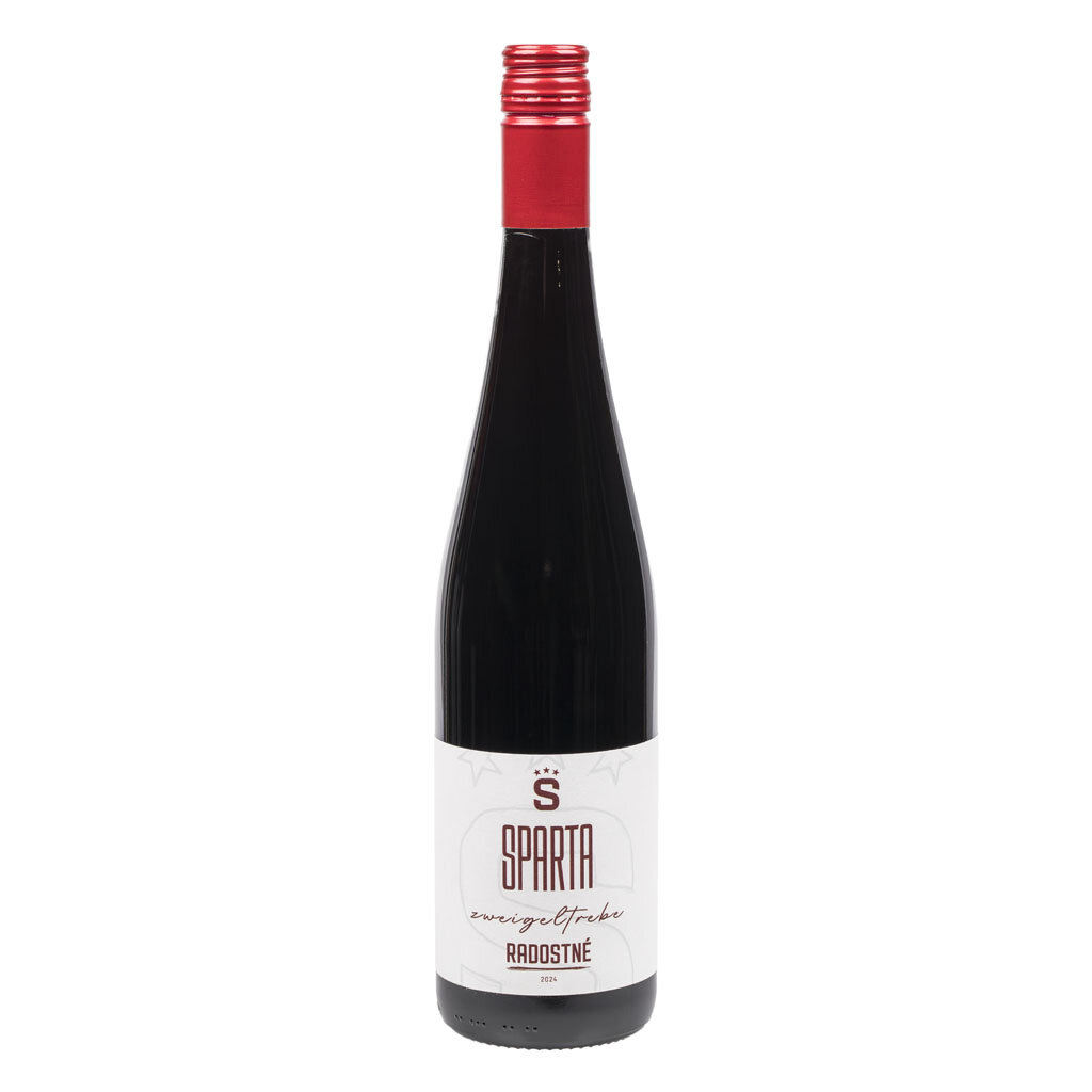 Víno Sparta Zweigeltrebe 2024 je suché červené víno určené pro všechny fanoušky Sparty.